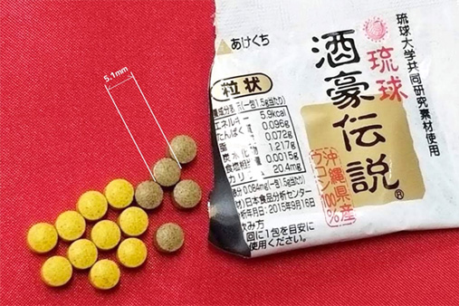 | 製品名(分類) 、容量 | プレミアム 琉球 酒豪伝説(健康食品:粒状)1包(15粒入:1回分) |